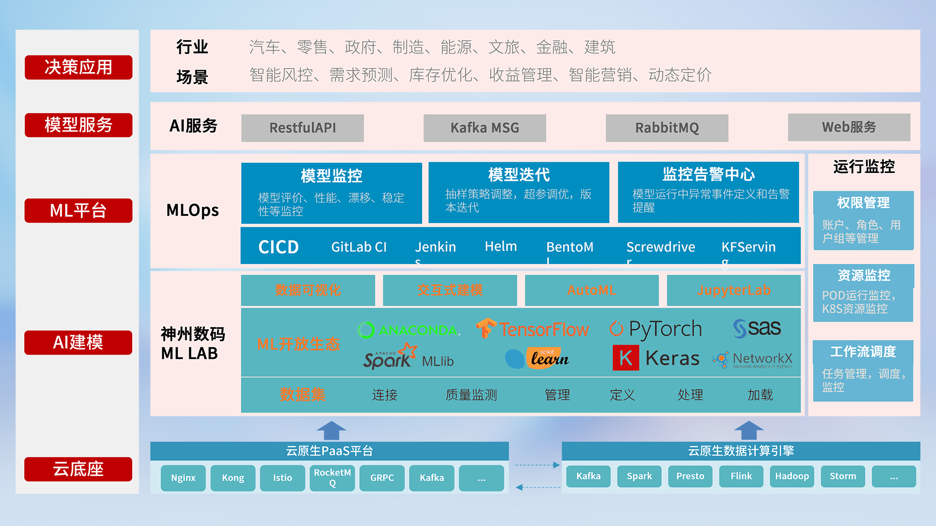 数据+模型双引擎驱动,,面向智能服务场景,,,,快速灵活利用AI技术,,,支持业务决策,,,,助力企业智能化转型破局。。。。